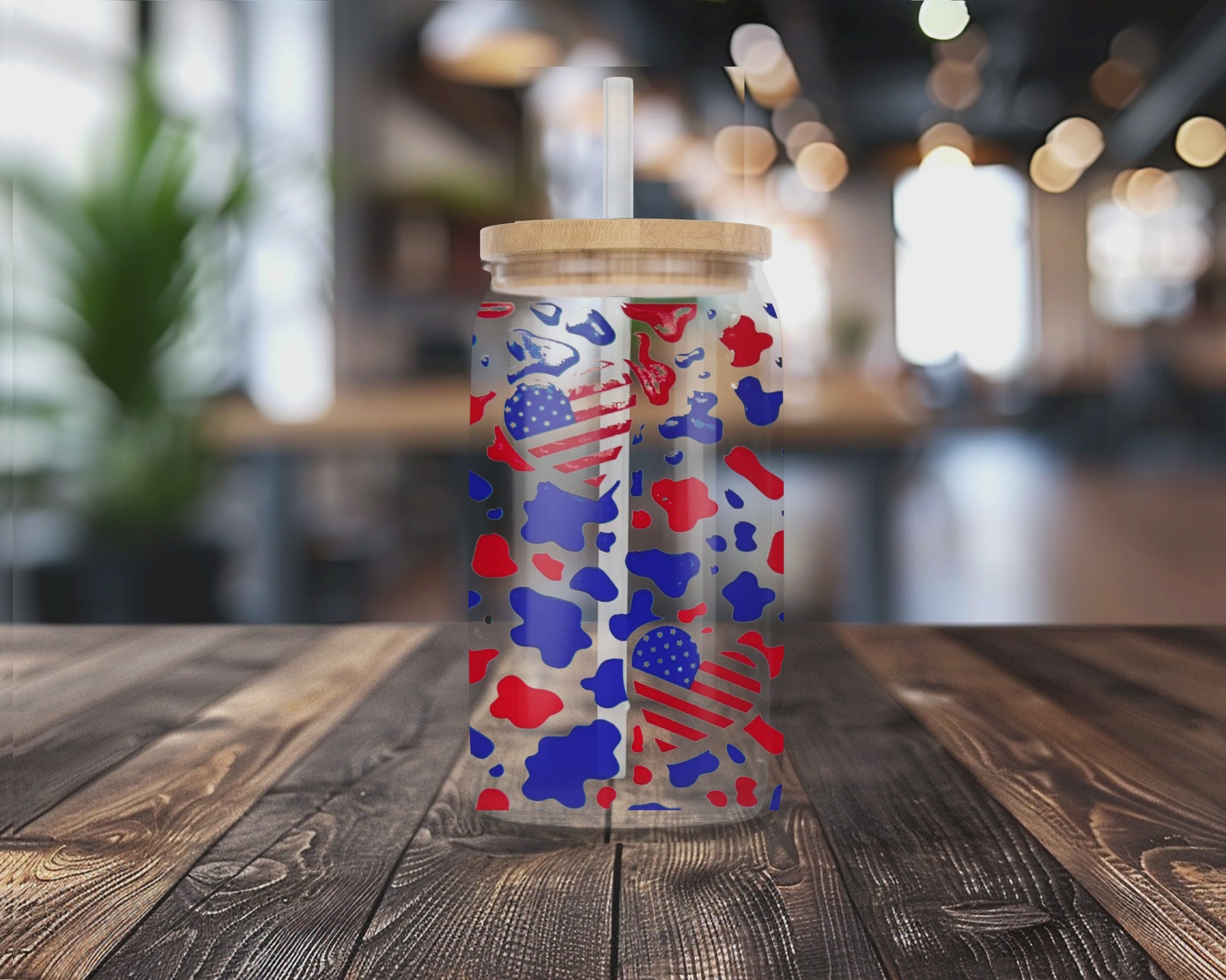 4th Of July Rainbows | UVDTF Transfer Full Wrap | 16 oz Glass Can
