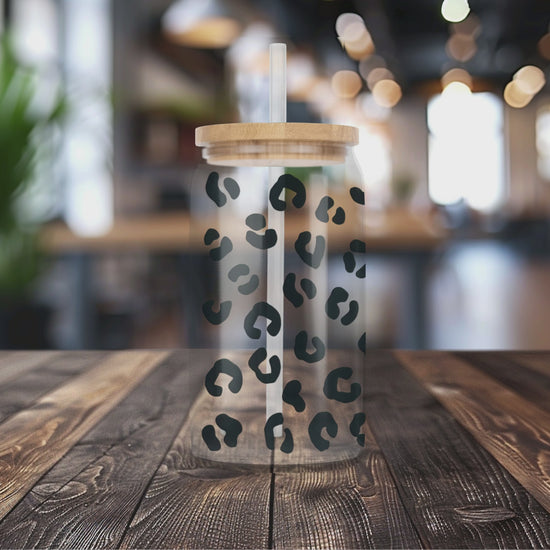 Coffee Leopard Print | UVDTF Transfer Full Wrap | 16 oz Glass Can