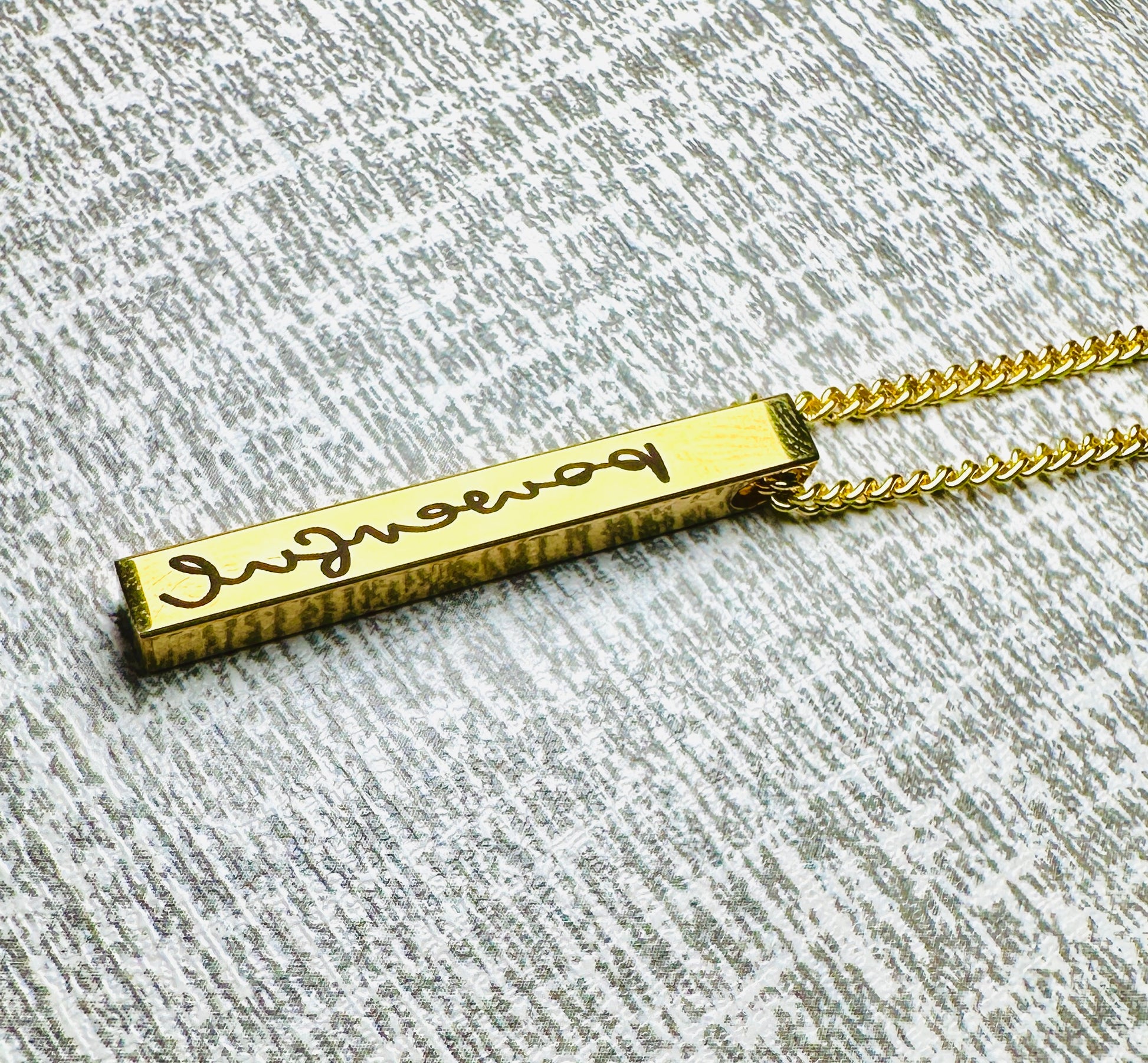 Vertical Column Empowering Charm Necklace | Mirrored Mindset Custom Engraved Necklace | Mirrored Mindset Jewelry