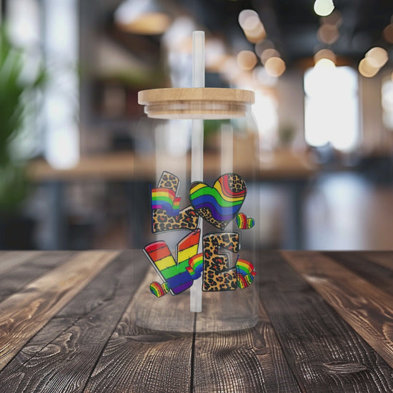 Peace Love Pride | UVDTF Transfer Full Wrap | 16 oz Glass Can