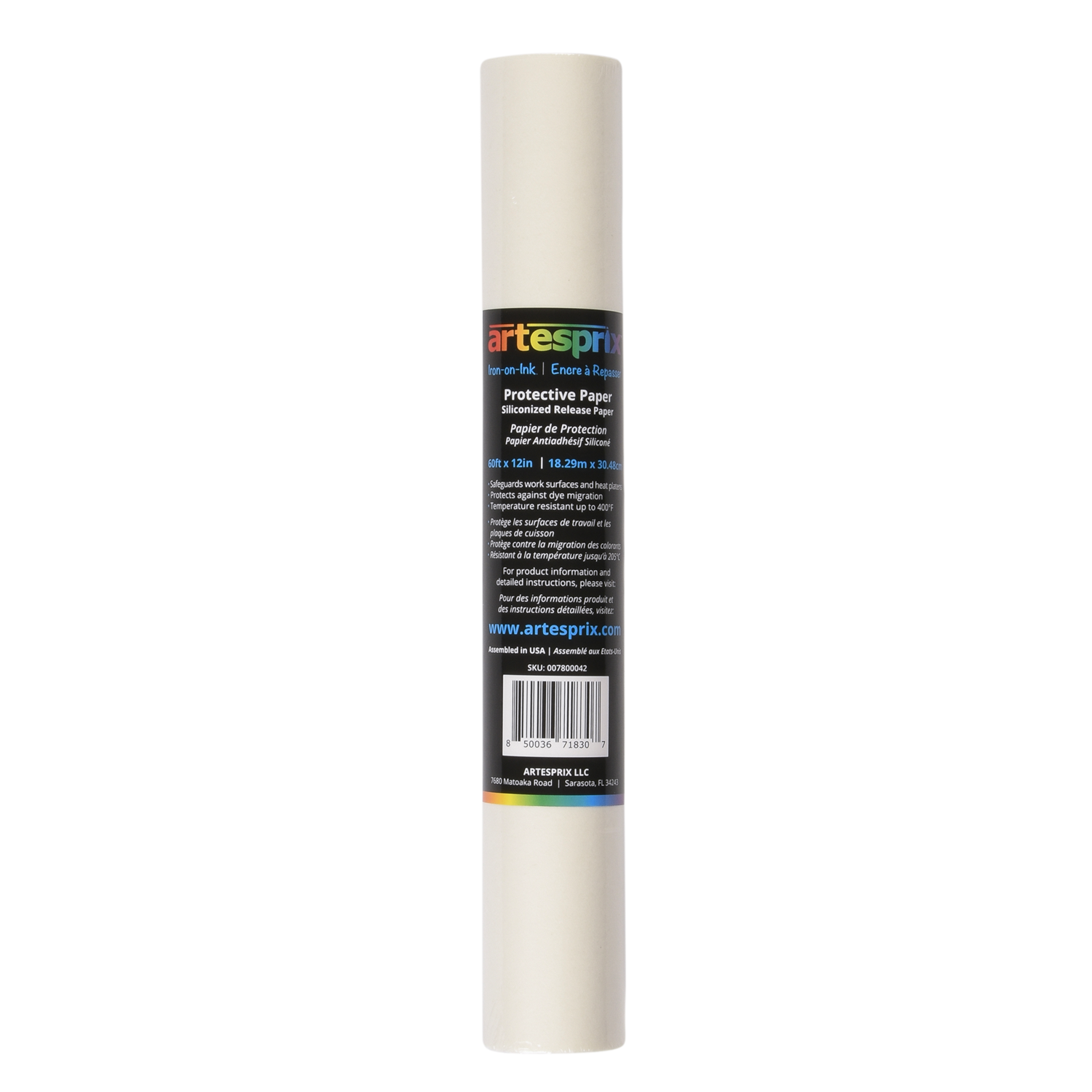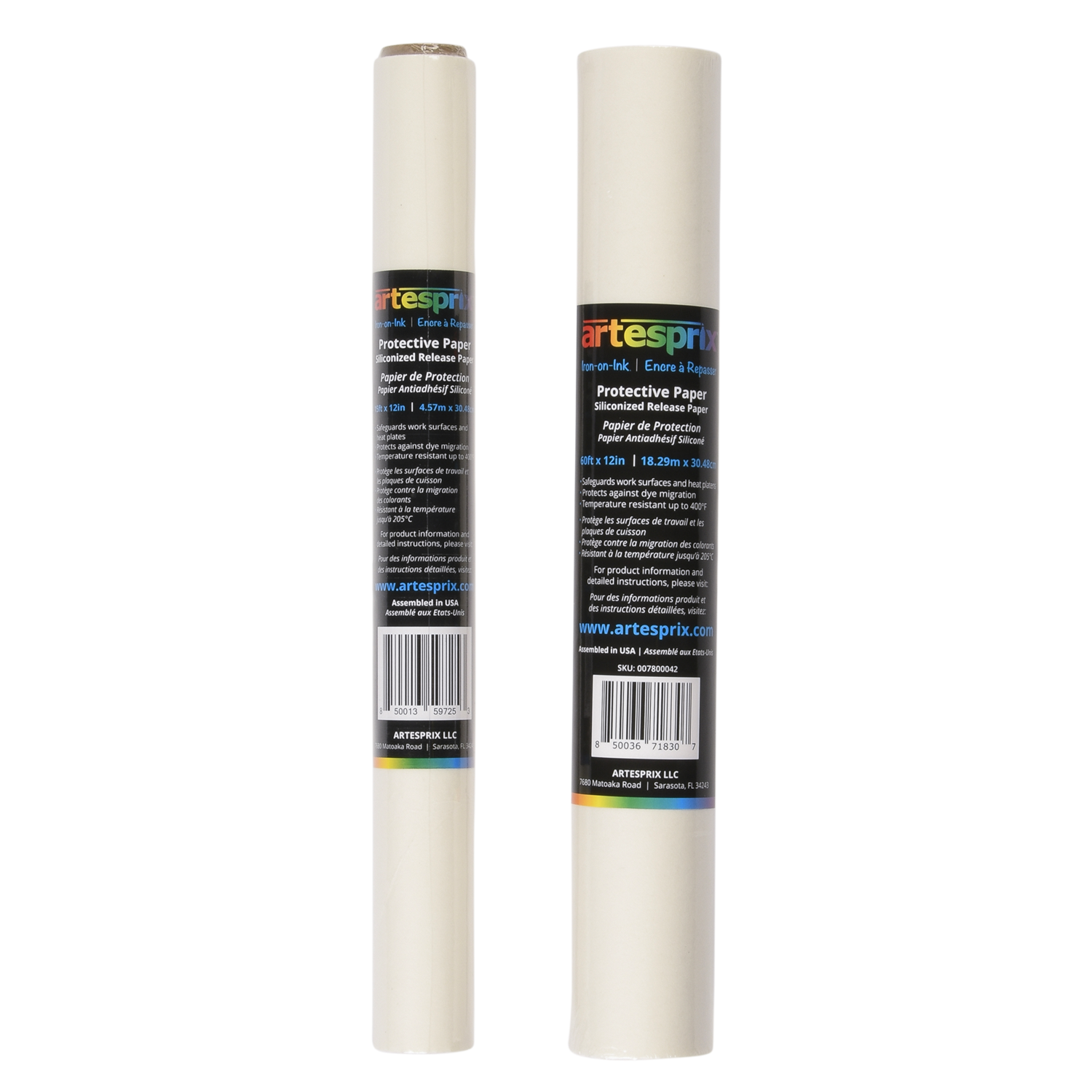 When it comes to sublimation, it’s important to protect your work surfaces and your projects. Protective Paper from Artesprix is made of 100% Silicone. Why silicone? Silicone paper is a tool used by high-end sublimation professionals to protect heat platens and equipment from the dye during the transfer process. It is designed to be the bread in the “Sublimation Sandwich” and trap the dyes during the transfer process as they change from a solid to a gas and back to a solid again.